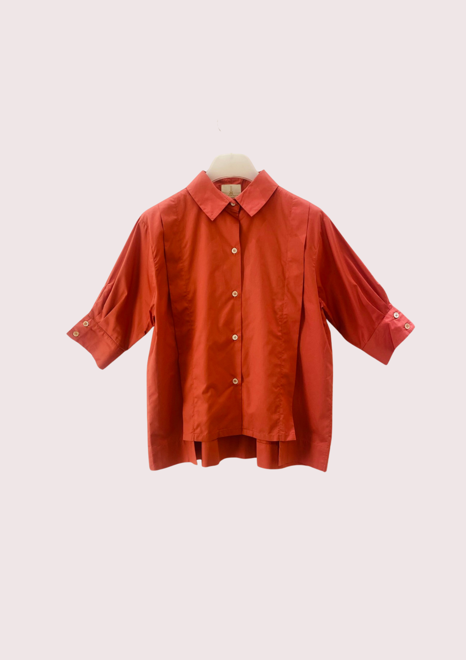 Unit price perThe Janny Poplin Blouse is a refined take on a classic silhouette, crafted from crisp, breathable cotton poplin. It features a structured collared neckline and a clean front button closure, elevated by a concealed placket that lends a streamlined finish. The relaxed, boxy fit is balanced by tailored three-quarter sleeves with buttoned cuffs, while a gently curved high-low hemline adds movement and ease. At the back, soft pleating introduces subtle volume, creating a graceful drape that enhances the blouse’s overall fluidity. Versatile and polished, the Janny is designed to be worn tucked or loose, making it an effortless staple for modern wardrobes.
