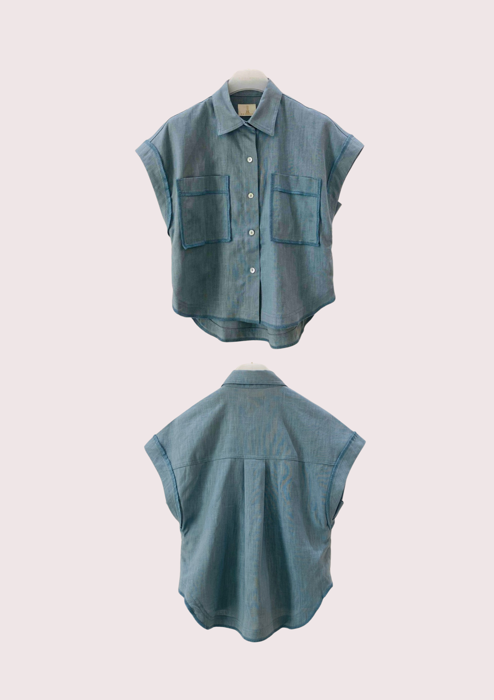 Unit price perThe Karla Linen Top is a structured yet effortless take on modern utilitarian style. Cut from premium linen, this cropped silhouette features oversized patch pockets, a relaxed cap sleeve, and a subtly boxy fit for all-day comfort. Earth-toned button closures lend a contemporary touch, making it a refined essential that moves seamlessly from casual days to elevated moments.
