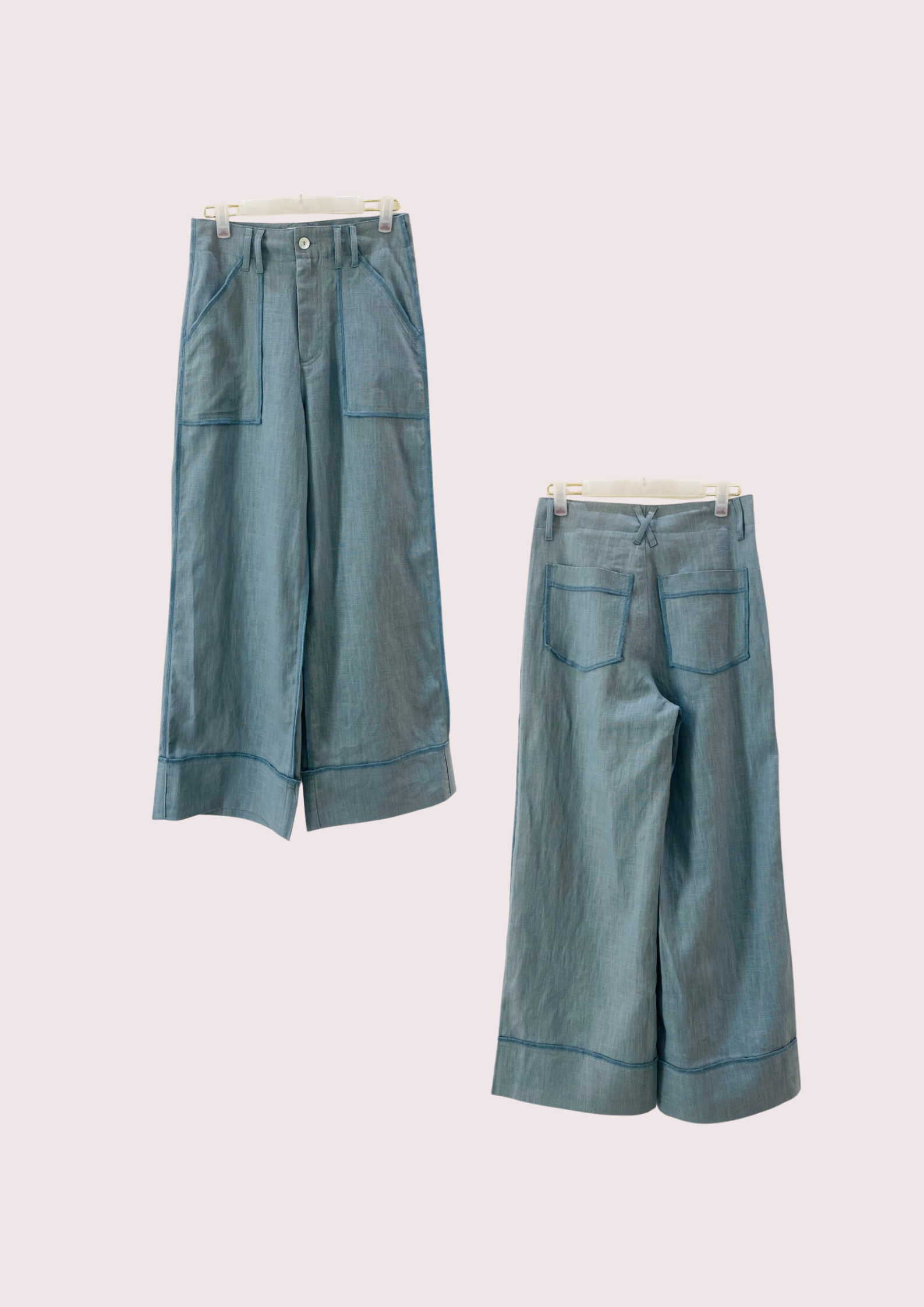 Unit price perThe Kayla Linen Pants offer a modern take on utility-inspired dressing. Crafted from premium linen, they feature monochromatic contrast stitching, oversized patch pockets, and a flattering high-waisted fit. With a clean, structured silhouette and thoughtful detailing, they bring ease and edge together — ideal for everyday wear with a refined twist.