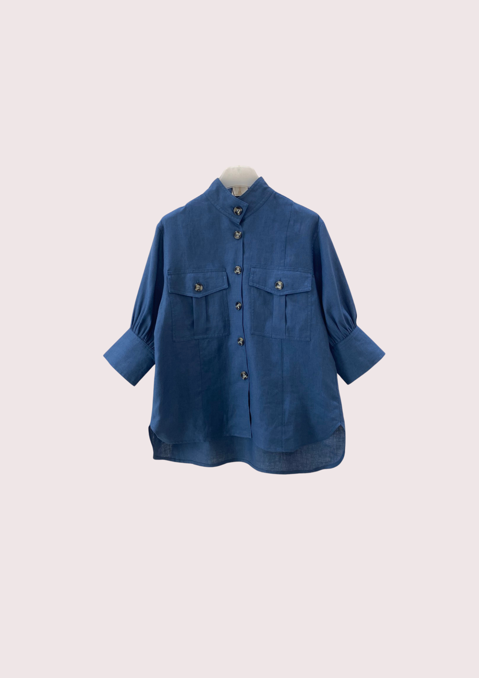 Unit price perA modern take on effortless tailoring, the Kei Linen Blouse is designed with clean lines and versatile structure. Featuring a mandarin collar, statement front buttons, and oversized flap pockets, it combines polished details with relaxed ease. The three-quarter sleeves are finished with wide cuffs and button accents, while the back pleat adds subtle volume and comfort. Cut with a slightly longer back hem for a flattering silhouette, this blouse transitions seamlessly from workdays to weekends.