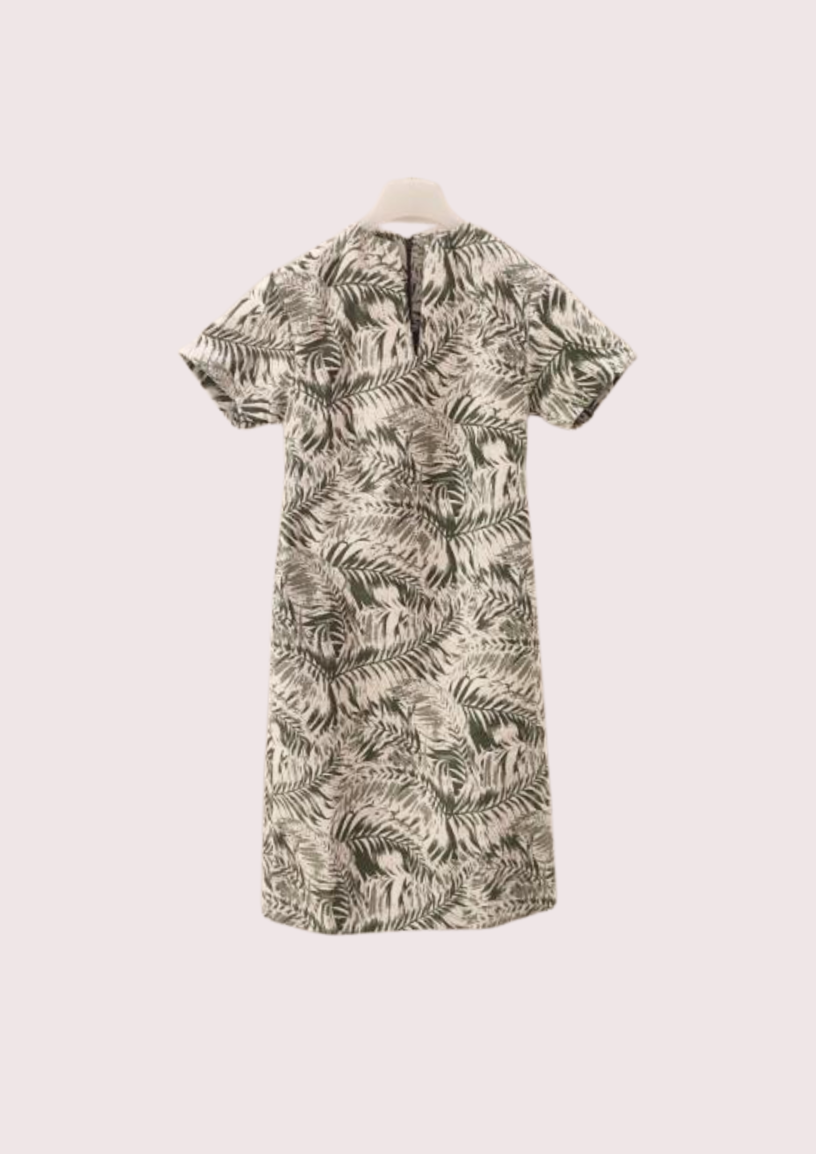 Unit price perThe Kyla Brocade Dress is cut in a structured silhouette and crafted from textured brocade featuring an elegant leaf motif. With a crew neckline, short sleeves, and a knee-length hem, it offers a flattering, polished shape. A concealed back zip and full lining ensure a smooth, comfortable fit throughout the day.
