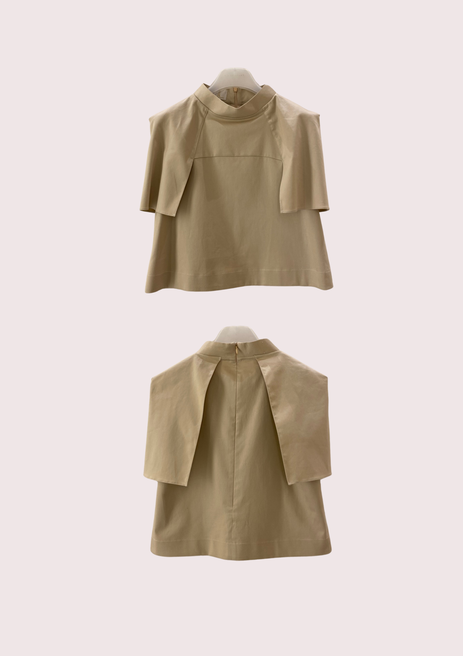 Unit price perThe Mila Cotton Twill Blouse features a high neckline, soft cape-style sleeves, and a boxy shape that creates a sense of volume. The drape of the blouse creates a minimalistic silhouette, adding definition to its lightweight structure.