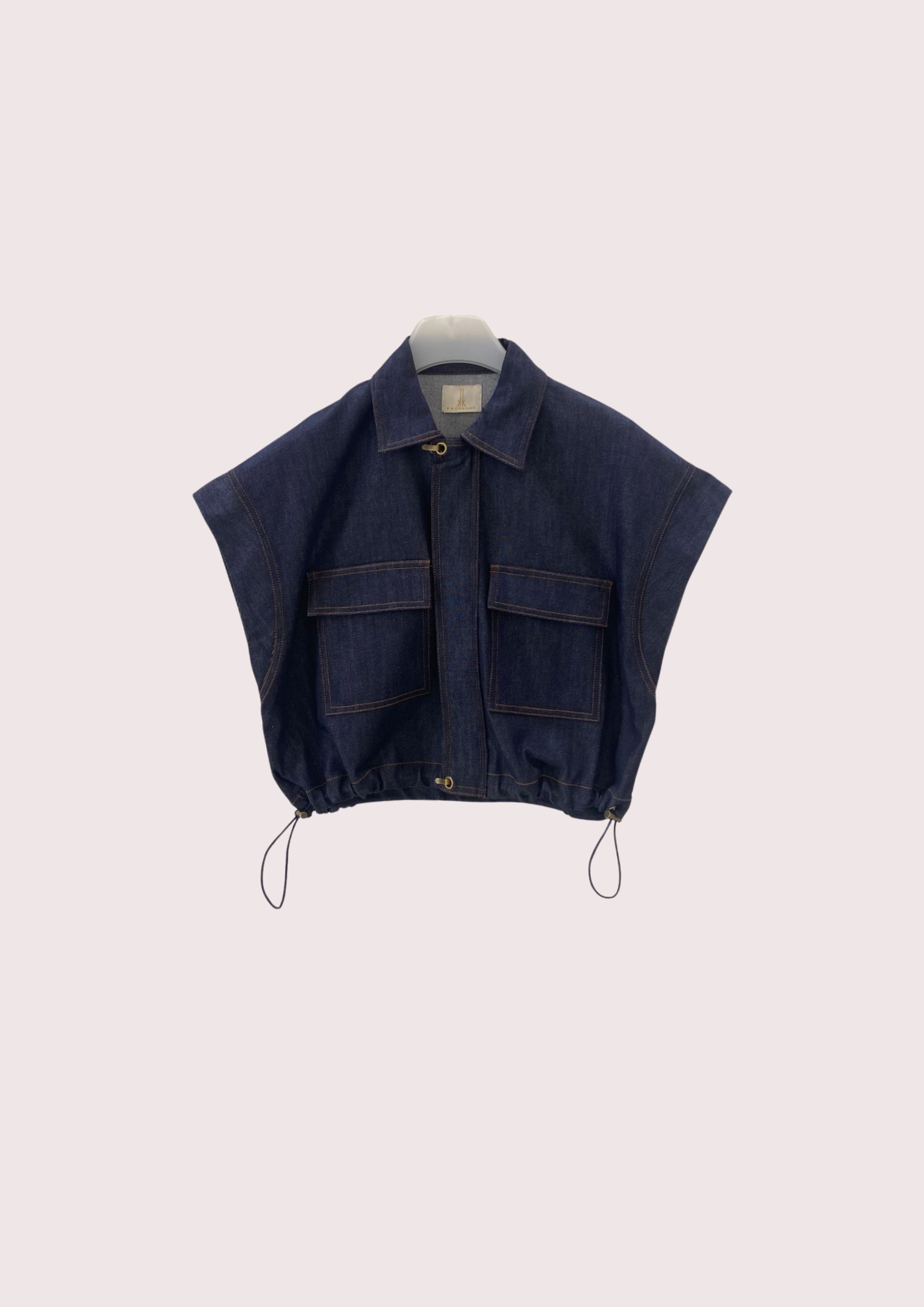 Unit price perThe Fino Denim Top brings a modern, utilitarian edge with its structured silhouette and crisp denim finish. Designed with oversized front pockets and a drawstring hem, it allows for adjustable shape and added versatility. The wide, capped sleeves and clean lines give it a contemporary feel—easy to style, lightweight, and effortlessly polished.