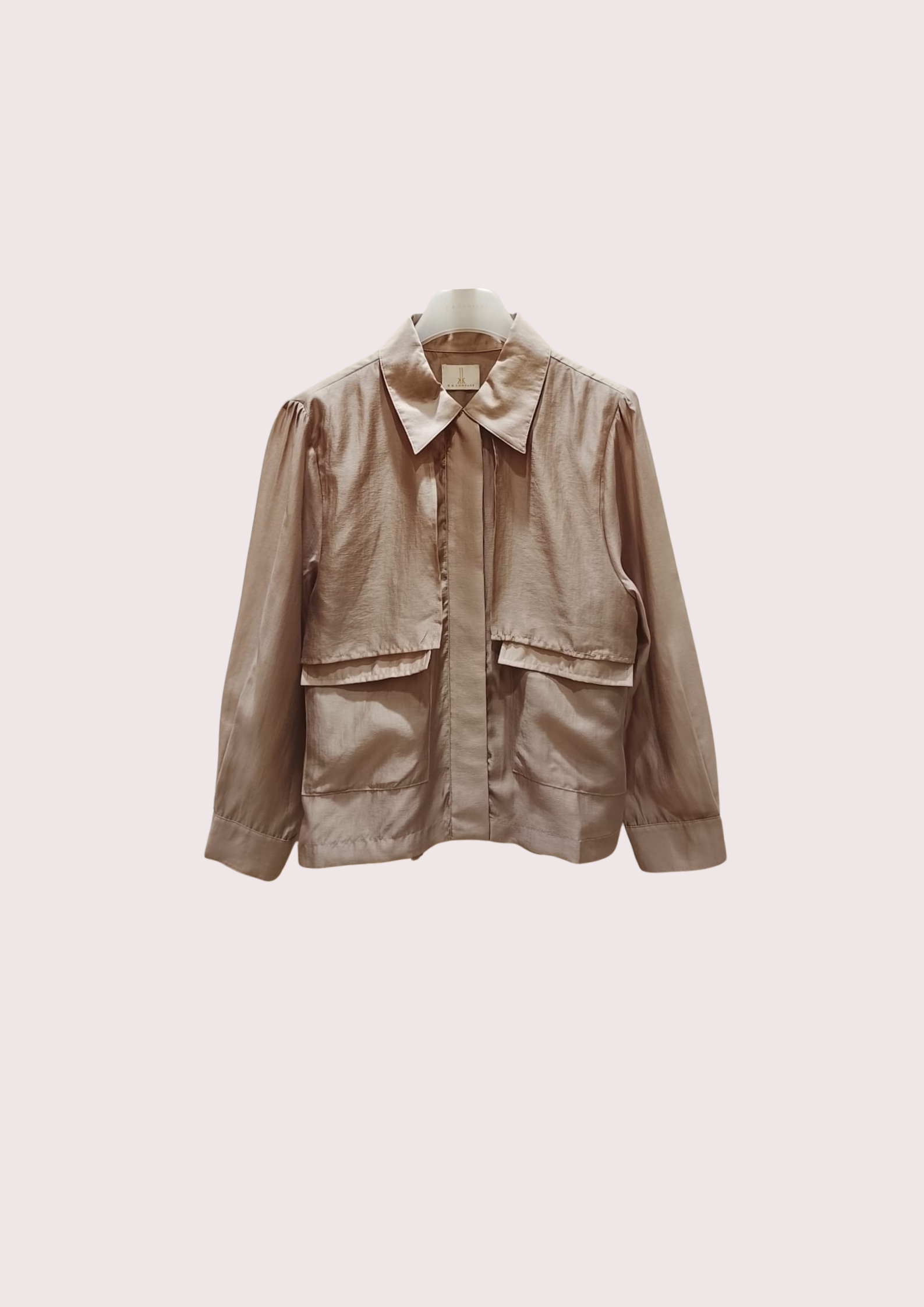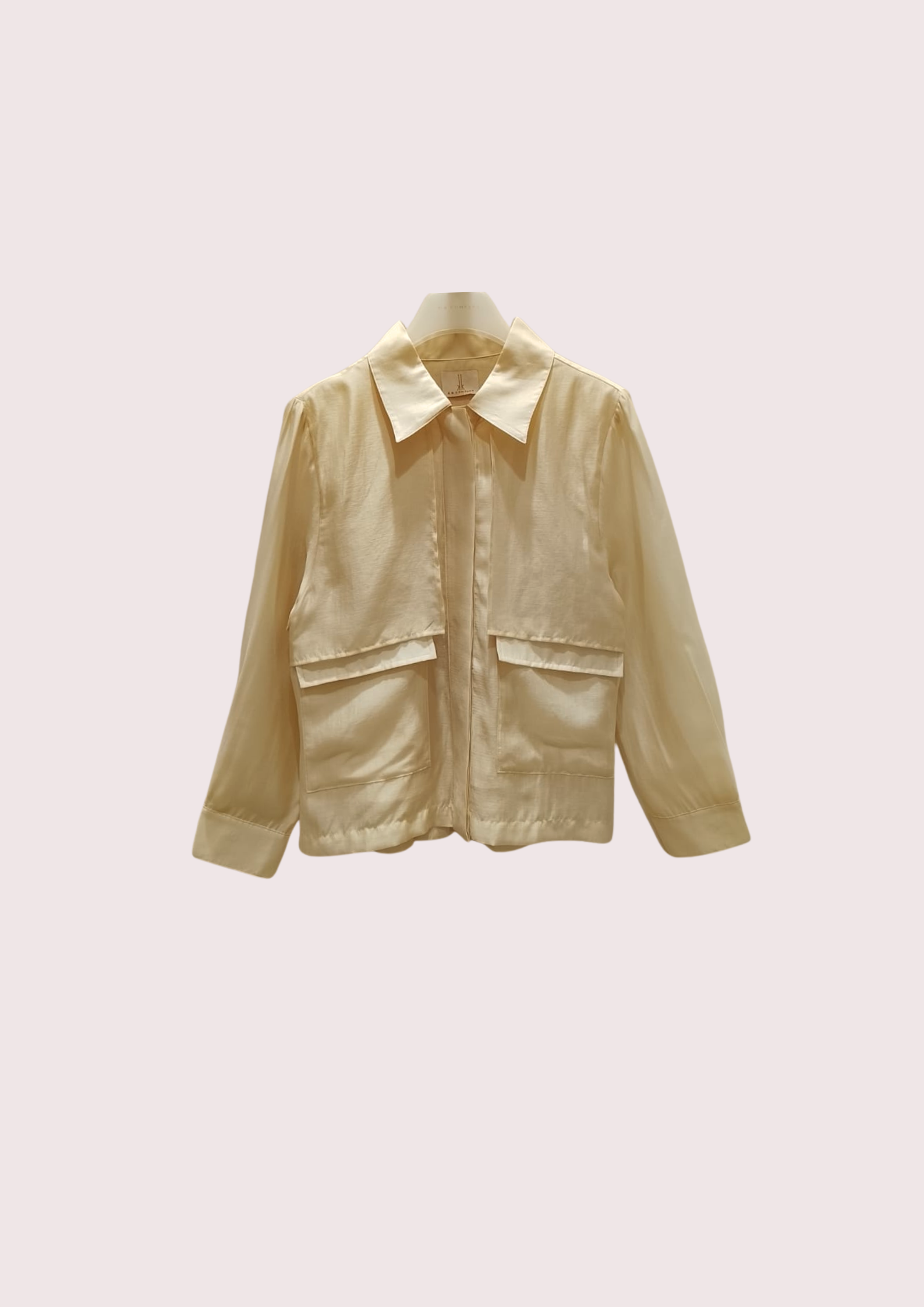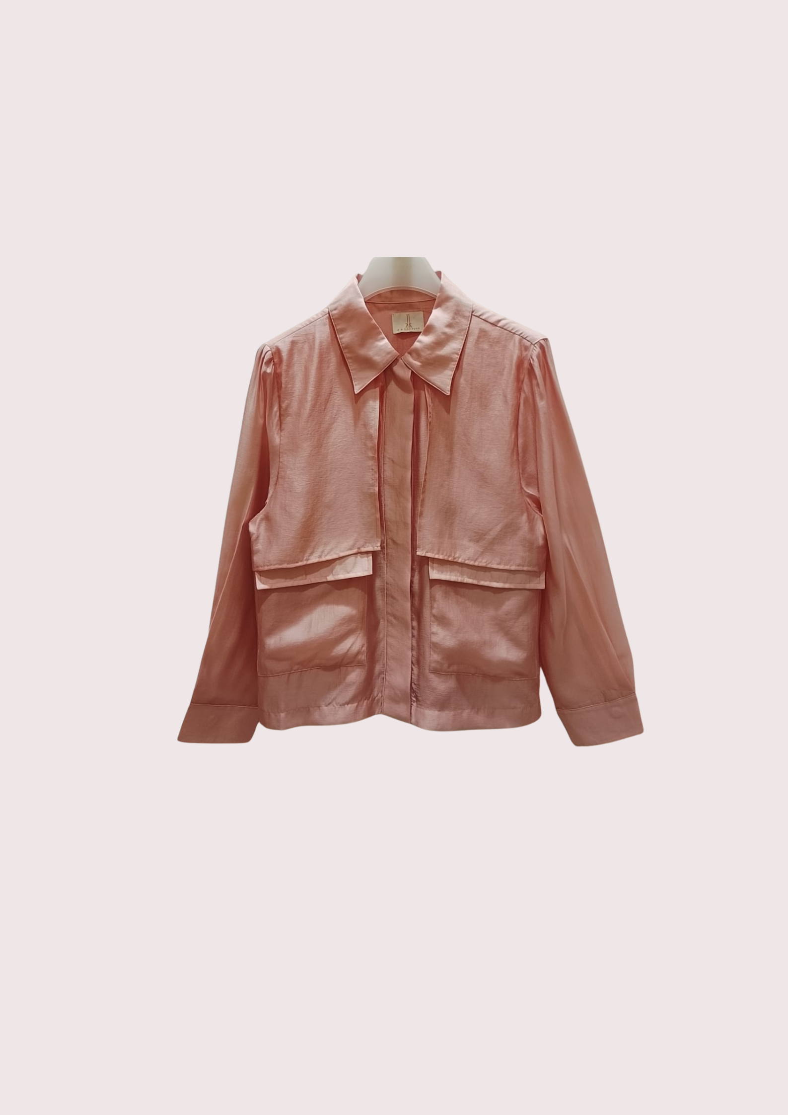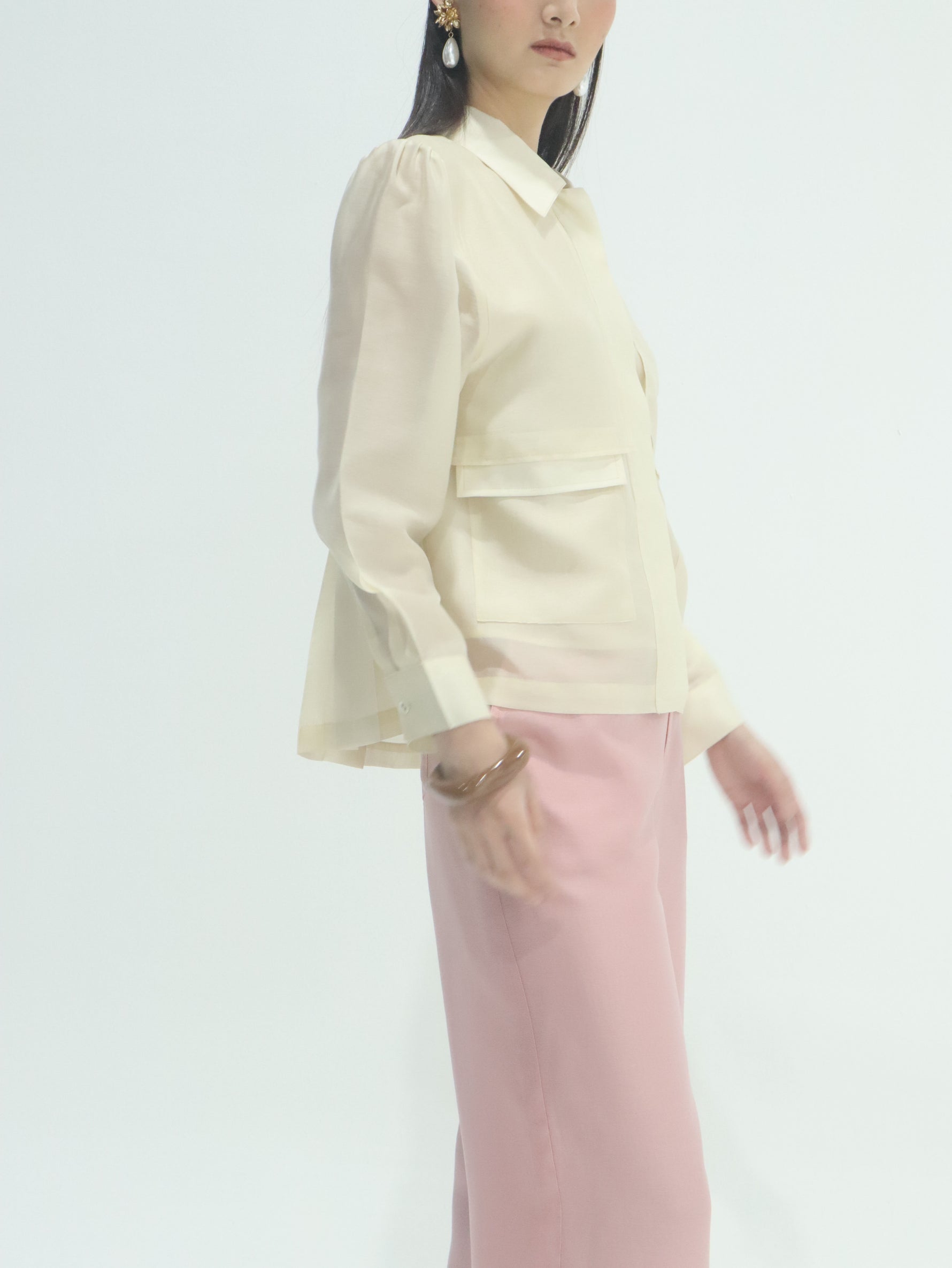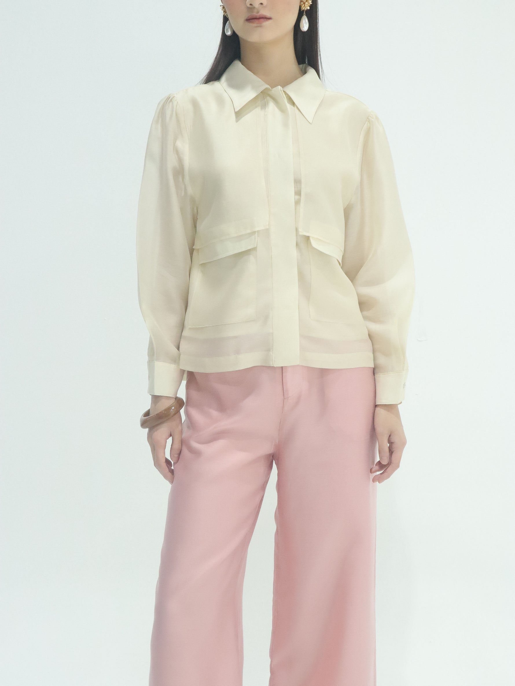 Unit price perThe Rafa Polysilk Blouse features a sophisticated collared neckline and a button-down front crafted from a smooth, lightweight polysilk fabric. This elegant, standard-length blouse is elevated by structural front utility pockets and a dramatic pleated back panel that adds fluid movement to its polished silhouette.