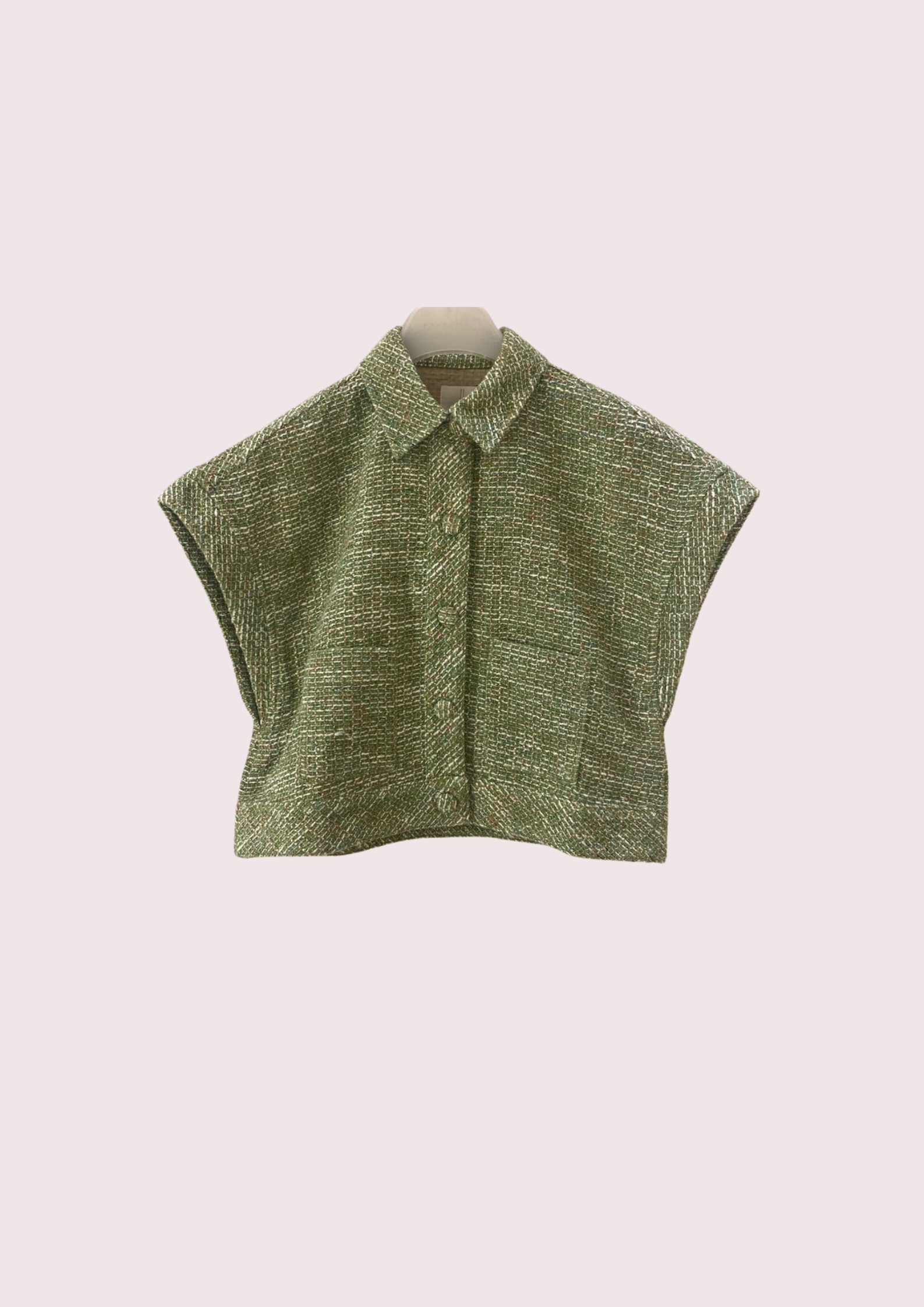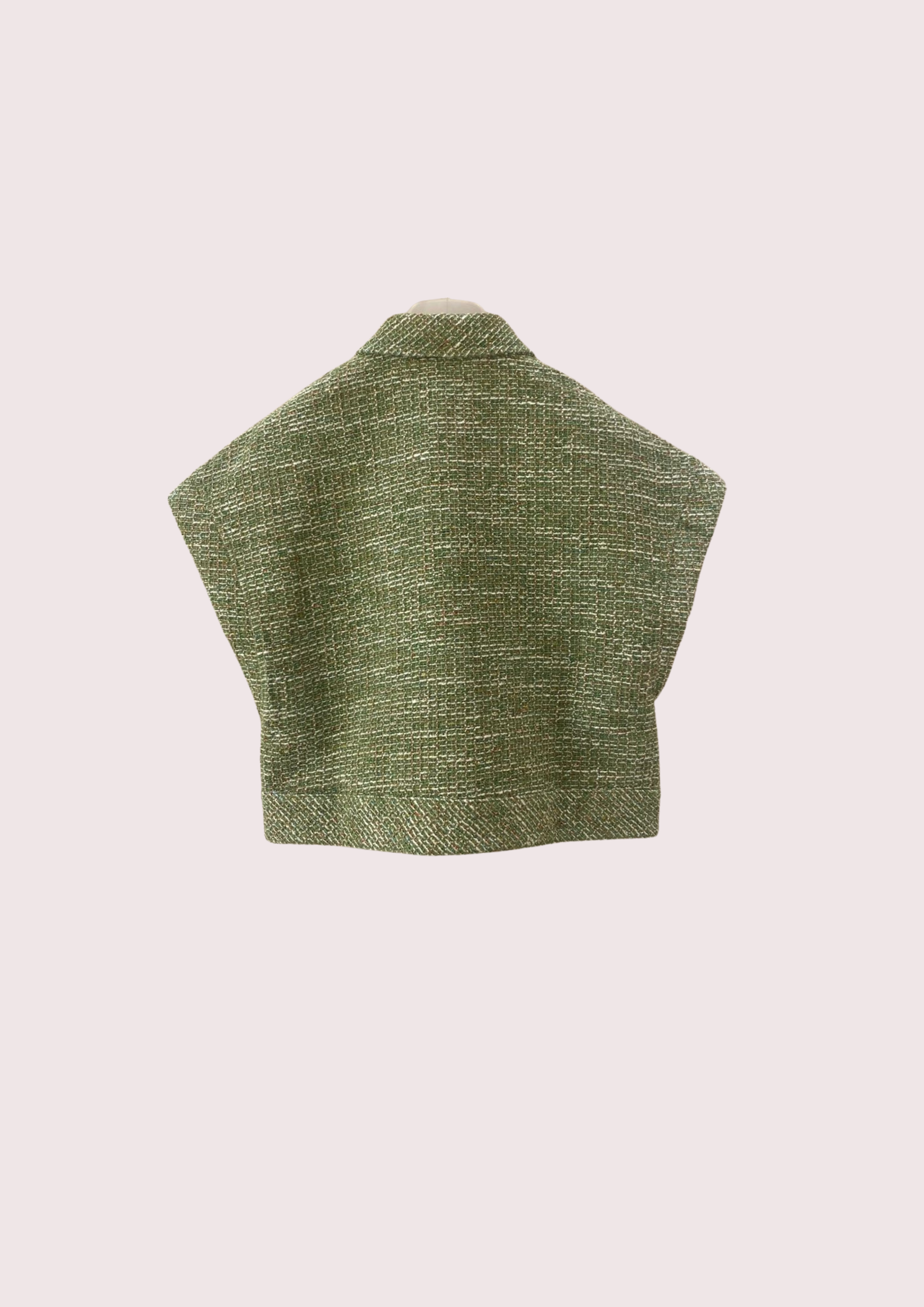 Unit price perThe Geli Tweed Top redefines structure with its cropped, boxy silhouette and textured tweed finish. Designed with a sharp collar and front button closure, it offers a polished yet modern edge. The soft, woven fabric gives a refined feel while maintaining comfort and ease. Perfect for pairing with high-waisted pieces, it transitions effortlessly from workwear chic to laid-back weekend style.
