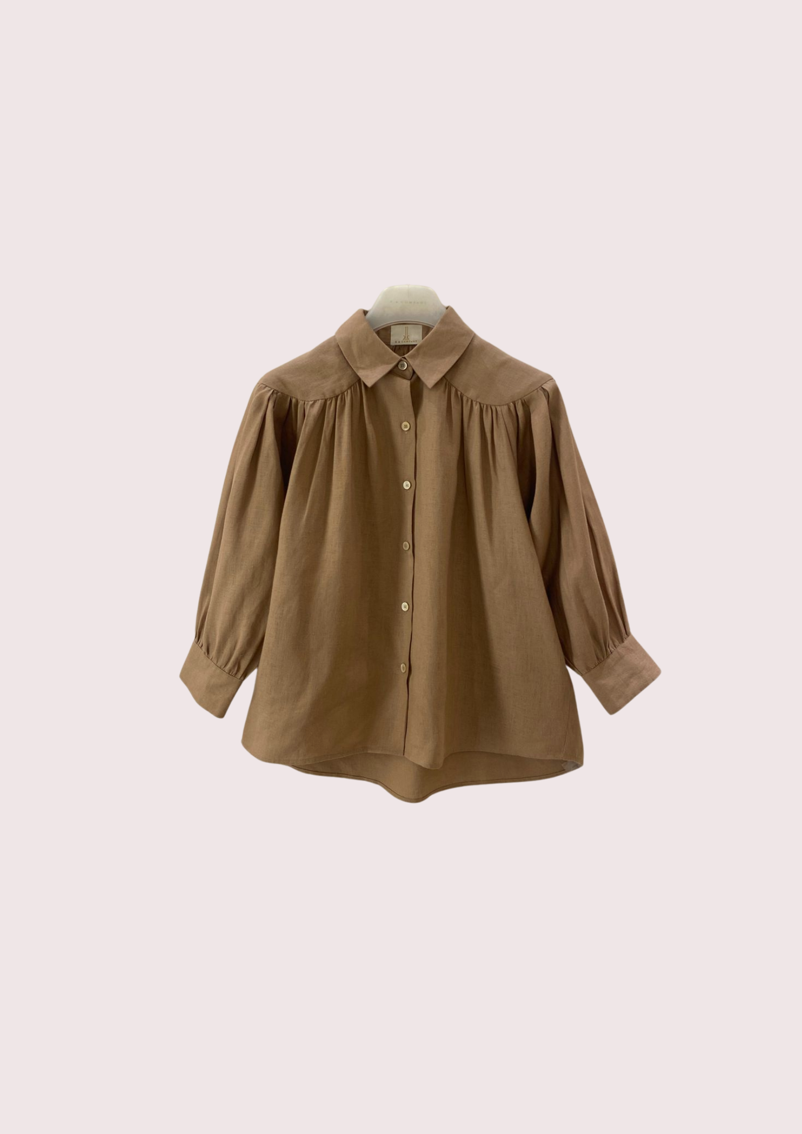 Unit price perThe Alora Linen Blouse features soft gathers along the yoke and sleeves, creating a relaxed yet refined silhouette. Made from breathable linen, it offers effortless movement and comfort. Finished with a curved hem and buttoned cuffs, this piece transitions seamlessly from weekday wear to leisurely weekends.