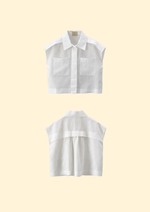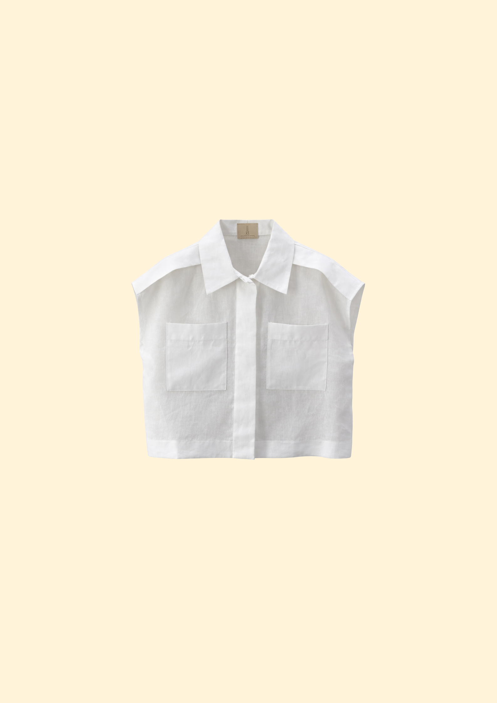 Unit price perThe Macy Linen Top is a contemporary, cropped button-down blouse crafted from premium linen that combines a structured boxy silhouette with a feminine drape. It features a collared continuous sleeve and a concealed front placket, accented by functional chest pockets and refined top stitching details throughout. The design is highlighted by a flap yoke with back shirring for added volume and movement, making it a polished choice that is best maintained by a gentle hand wash. making it an ideal choice for creative office settings, casual weekend gatherings, or a stylish summer vacation.