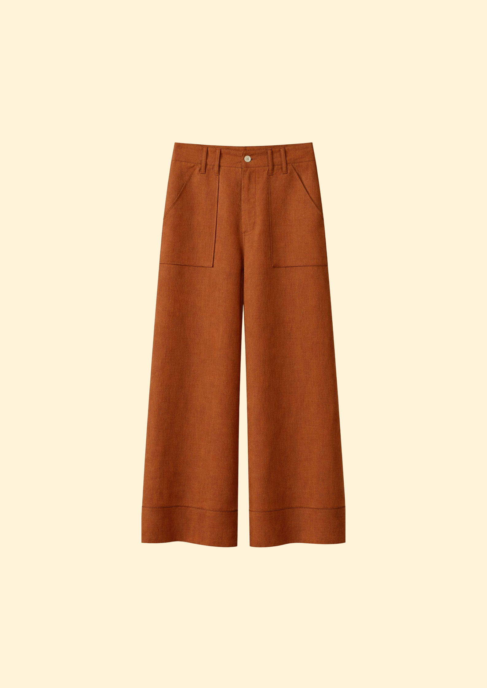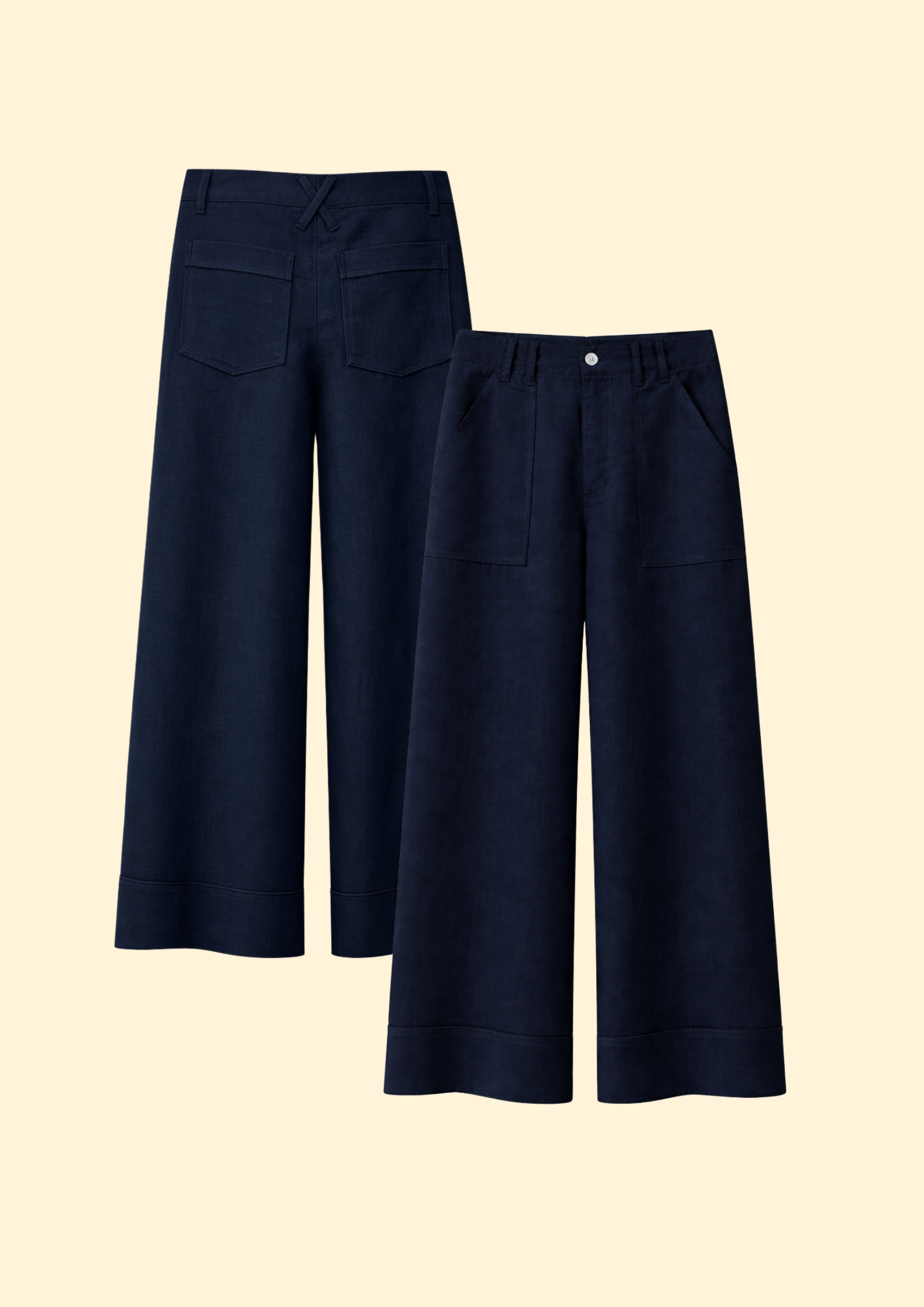 Unit price perThe Kendall Linen Pants are a sophisticated warm-weather essential, defined by a polished full-length, wide-leg silhouette that offers both elegance and ease. These high-waisted pants feature a classic button and zip fly with belt loops and are accented by unique oversized front patch pockets for a touch of refined utility. The back is designed with a clean aesthetic, featuring a distinctive X shaped yoke and sleek horizontal welt pockets that enhance the tailored fit. Crafted from 100% pure, breathable linen, these pants are an ideal choice for a creative professional wardrobe, sophisticated travel, or elevated summer social gatherings.