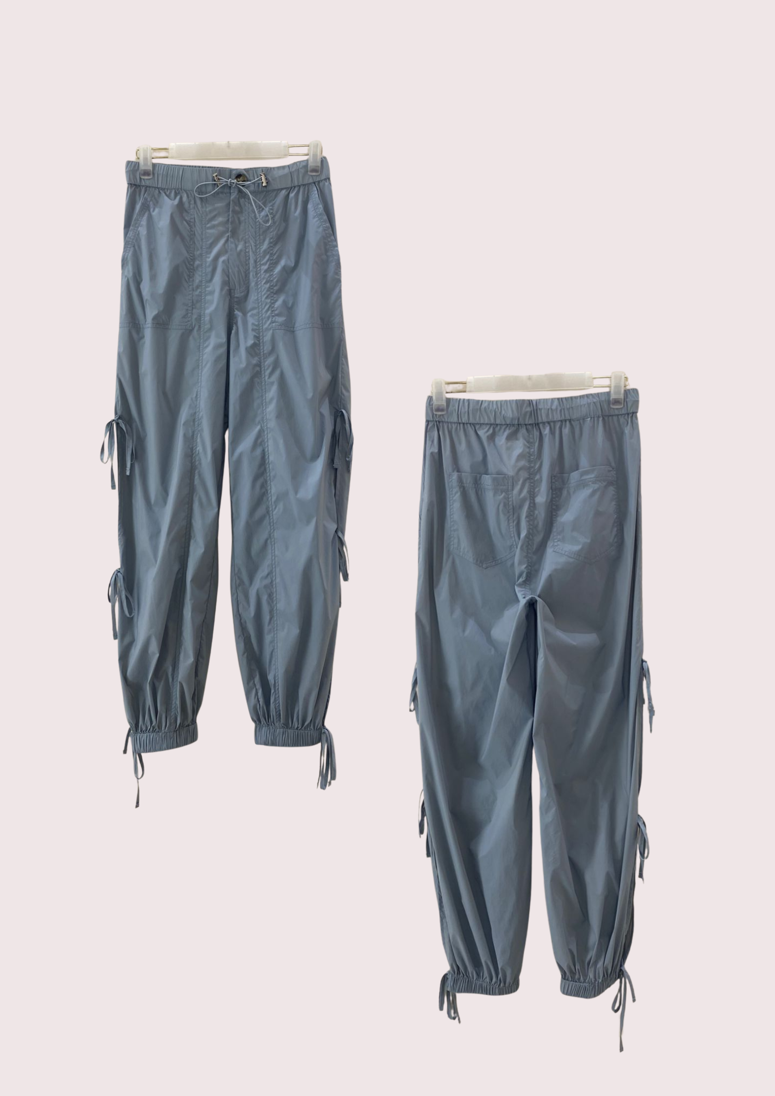 Unit price perThe Miller Parachute Pants offer a relaxed, modern fit and are defined by their functional and stylish details. They feature a comfortable drawstring elastic waist and two front pockets. Multiple decorative ties run along the sides of the legs, allowing you to customize the gathered look and silhouette. The legs taper down to elasticized cuffs, completing the classic parachute pant design.