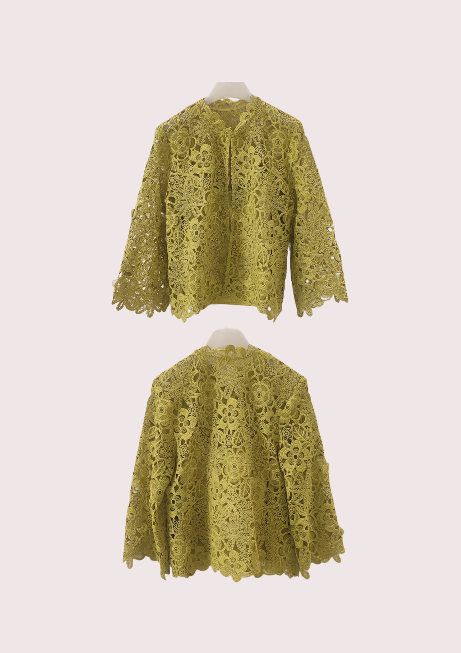 Unit price perThe Odette Lace Blouse embodies timeless femininity through intricate craftsmanship. Designed with all-over floral lace and scalloped edges, it offers a delicate balance of structure and lightness. The relaxed silhouette and three-quarter sleeves create an effortlessly elegant look, perfect for layering or wearing as a statement piece. Refined yet versatile, it brings a touch of romance to both everyday and special occasions.