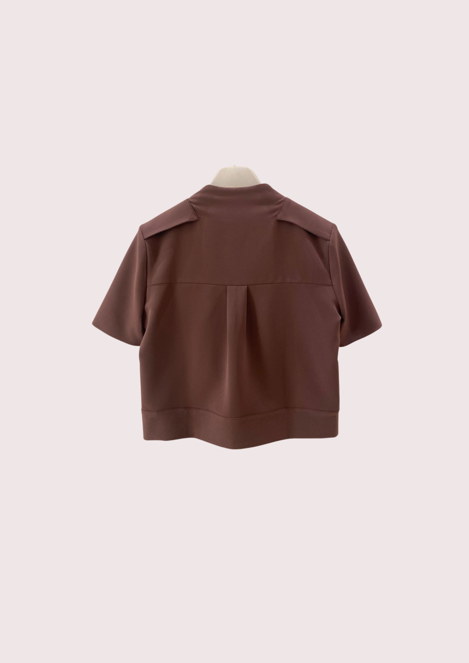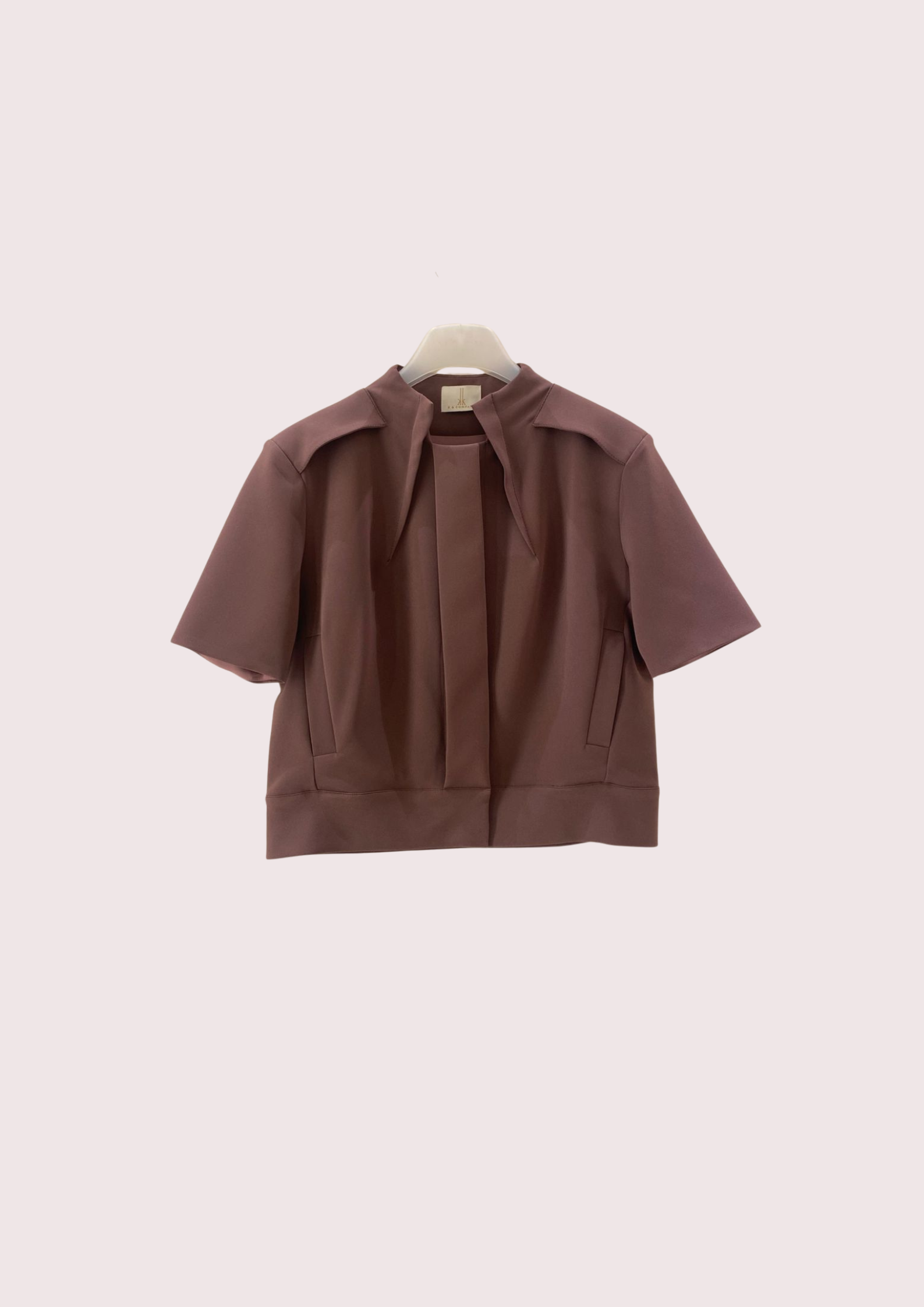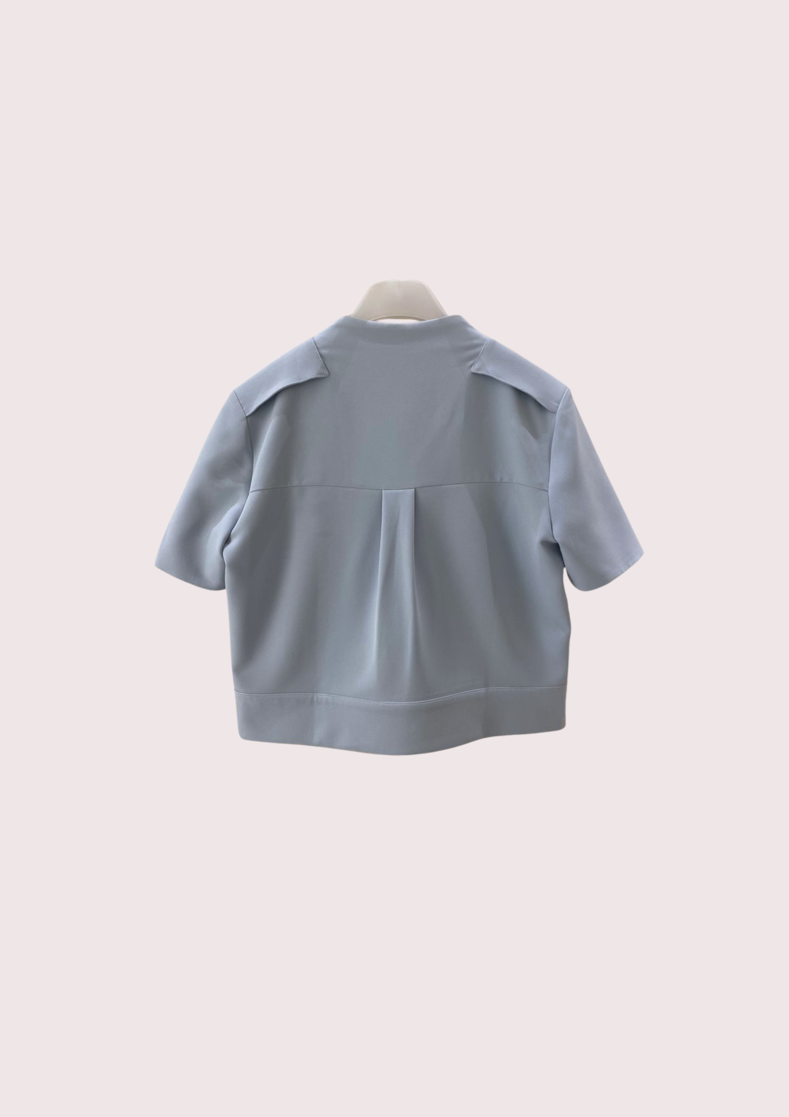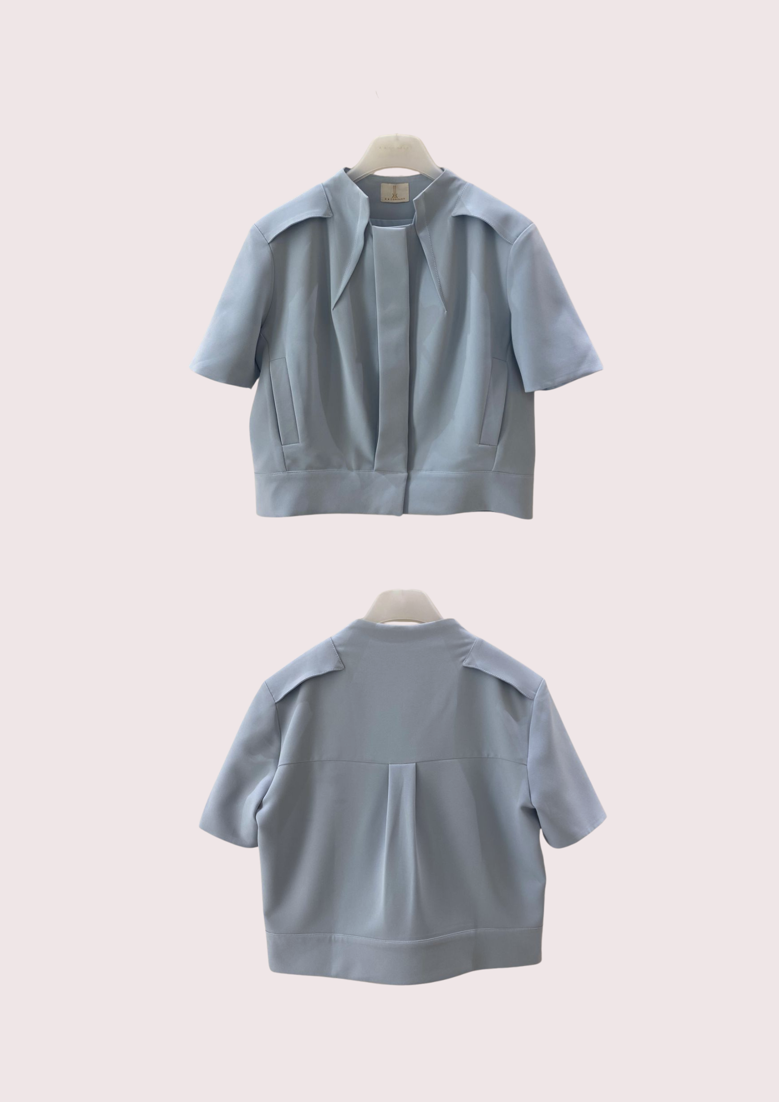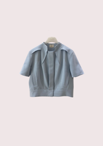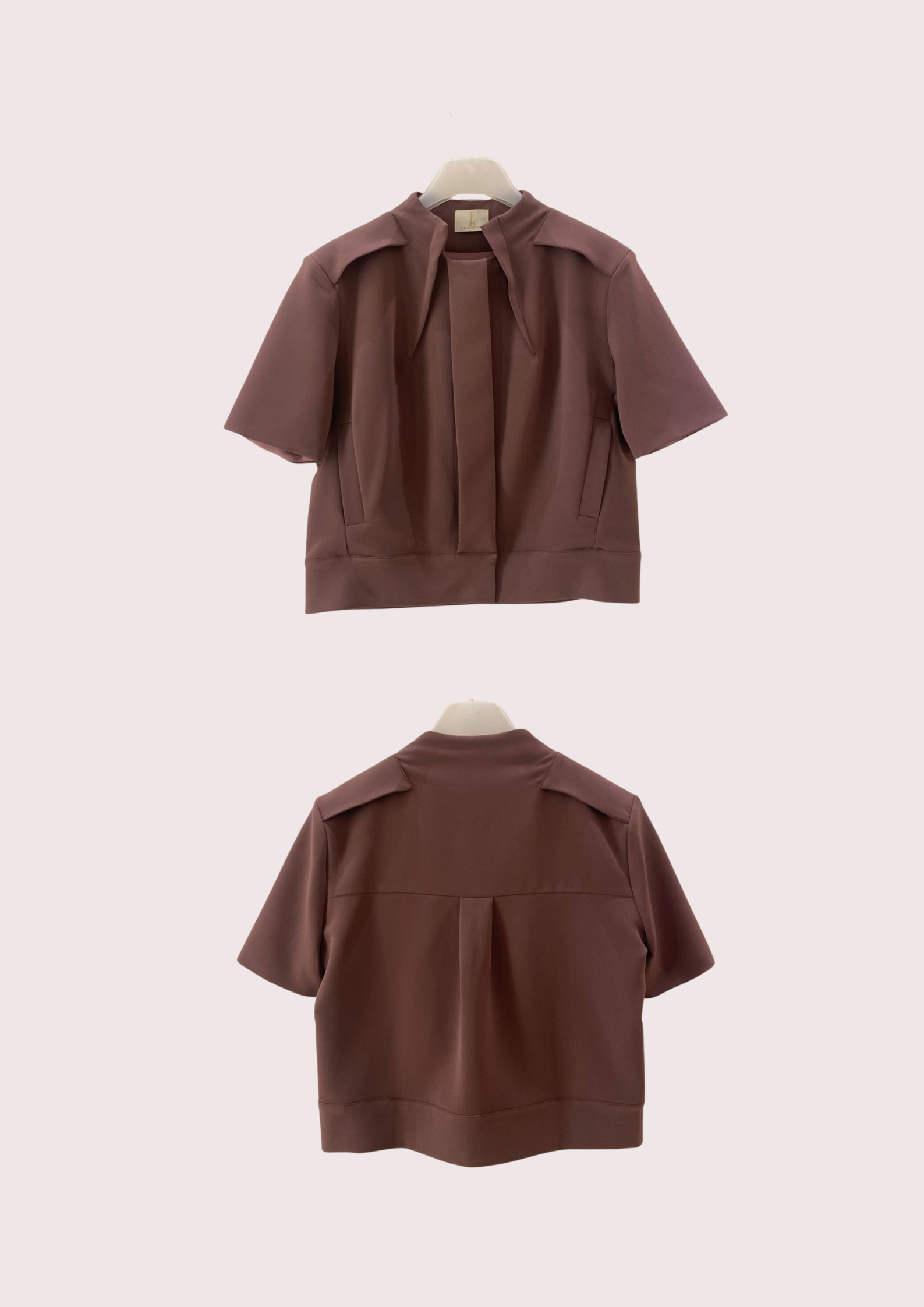 Unit price perThe Zenia Suiting Blouse features a refined, boxy silhouette with sculptural pleats that frame the front for a modern touch. The clean neckline and tailored seams emphasize its architectural design, while discreet side pockets and a back pleat add subtle dimension and ease. Perfect for creating a polished yet contemporary look.