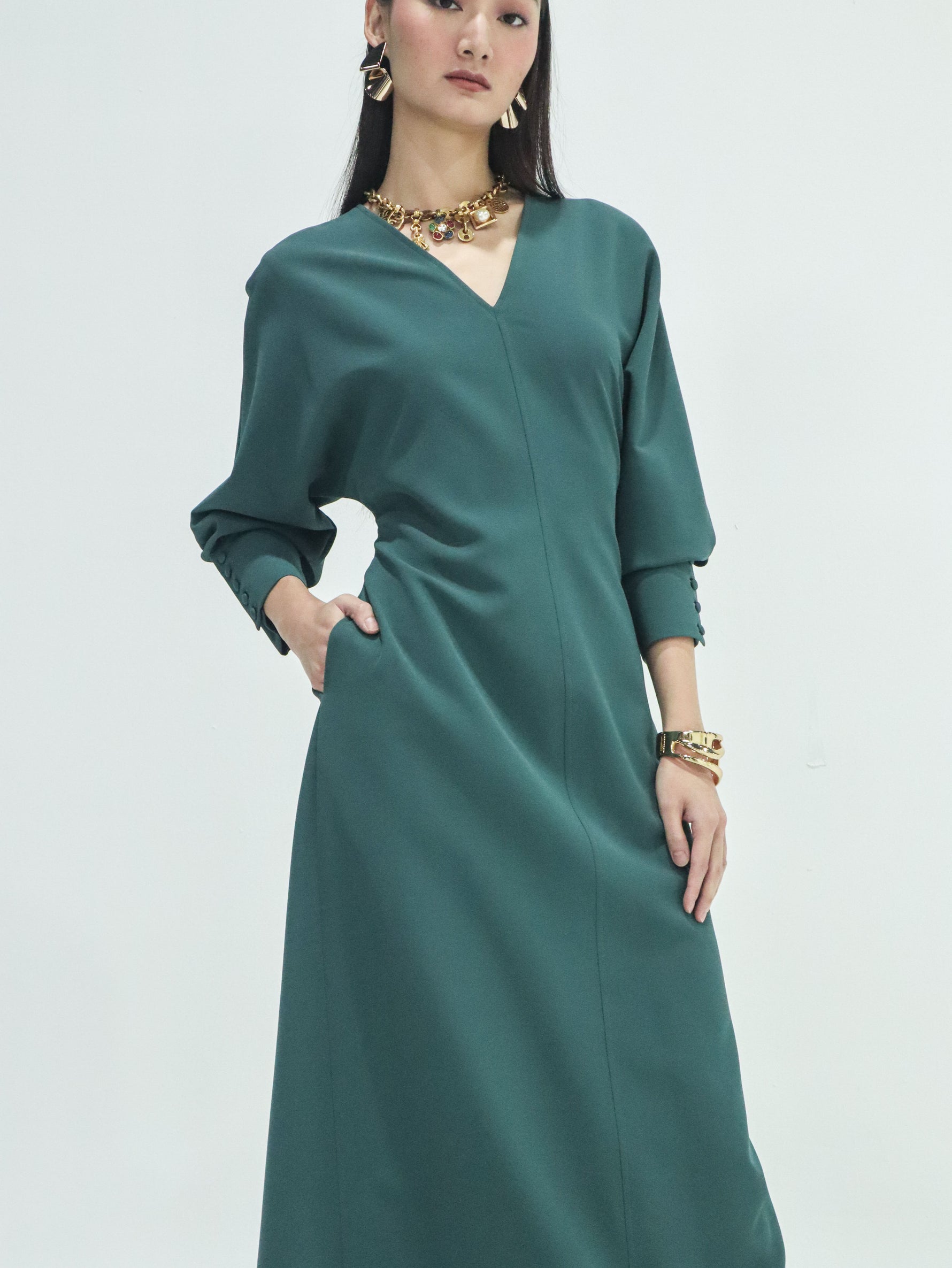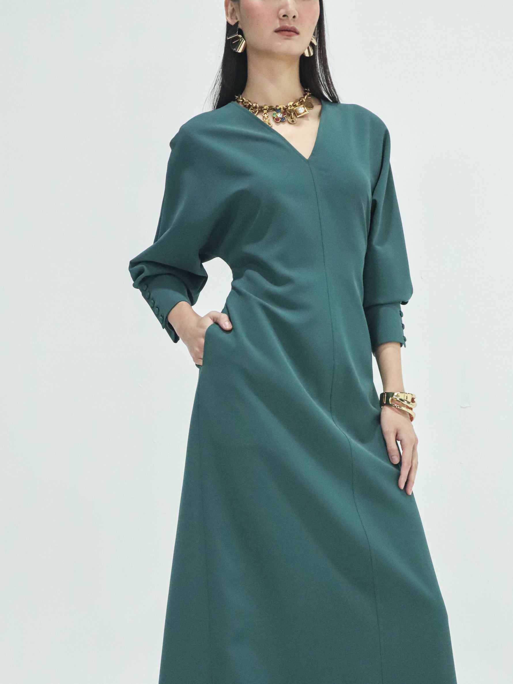 Unit price perThe Amara Suiting Dress is a striking reimagining of power dressing, defined by its dramatic sculpted puff sleeves that add a bold, romantic volume to the shoulders. The silhouette centers on a sharp V-neckline, drawing the eye downward to a meticulously tapered waist before opening into a graceful, A-line hem. This piece expertly marries the weight of premium suiting with a flared, architectural movement, creating a high-end look that is both commanding and effortlessly feminine.