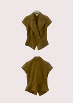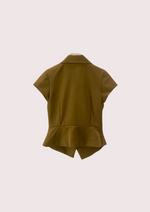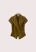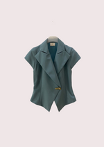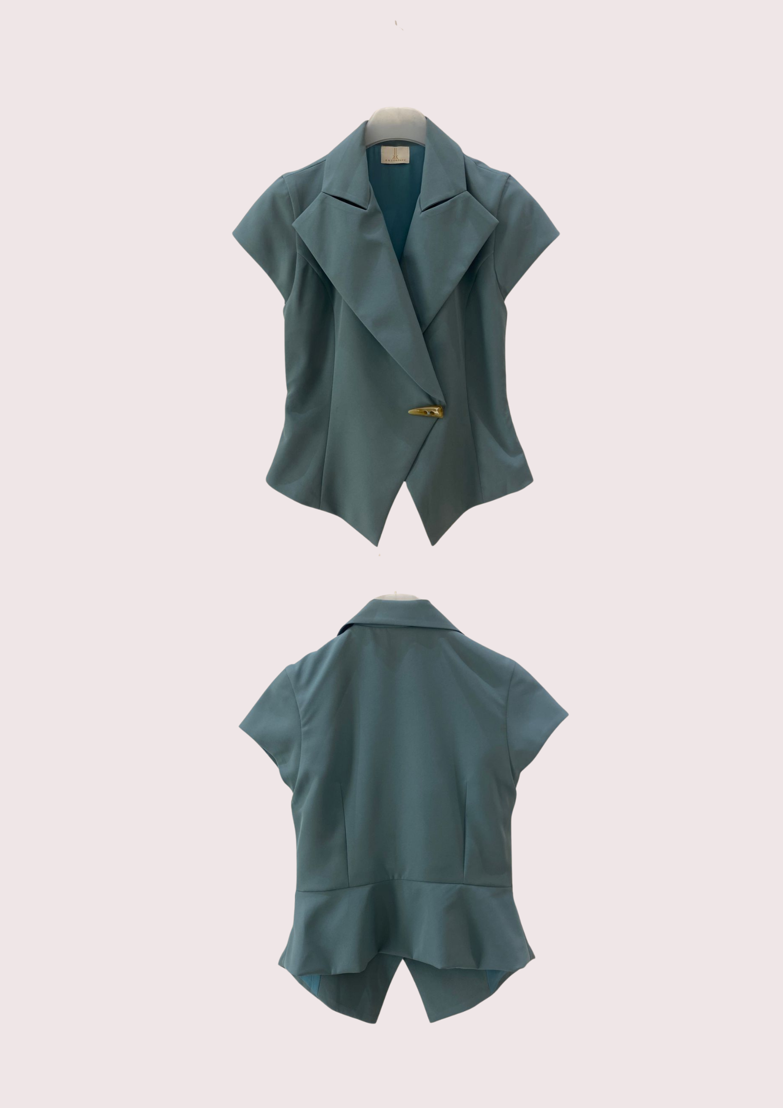 Unit price perThe Marion Blouse blends sculpted tailoring with fluid softness, wrapping the frame in clean, architectural lines. Its wide lapels fold into a graceful overlap, secured with a subtle clasp that adds both structure and ease. Gentle cap sleeves and a softly flared back hem create a silhouette that feels as refined as it is comfortable, skimming the body without restriction. Designed to move with you, it balances crisp form with a natural drape, offering a polished piece that feels effortless against the skin.