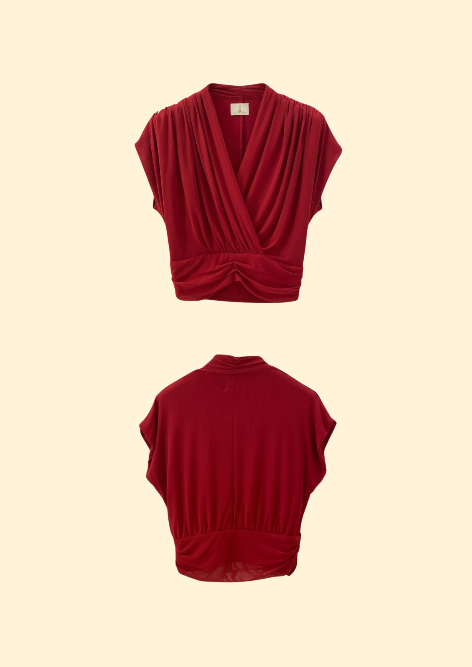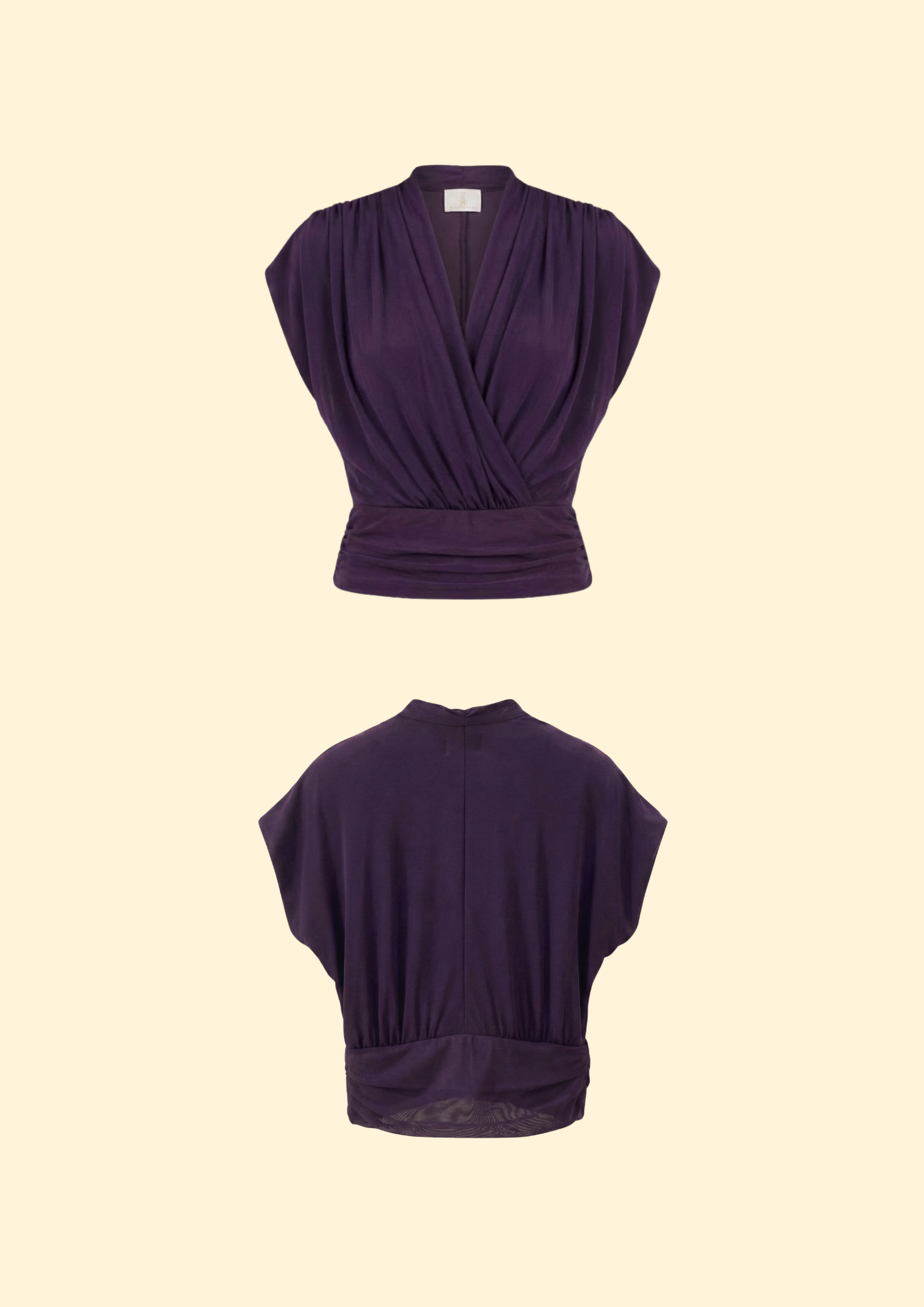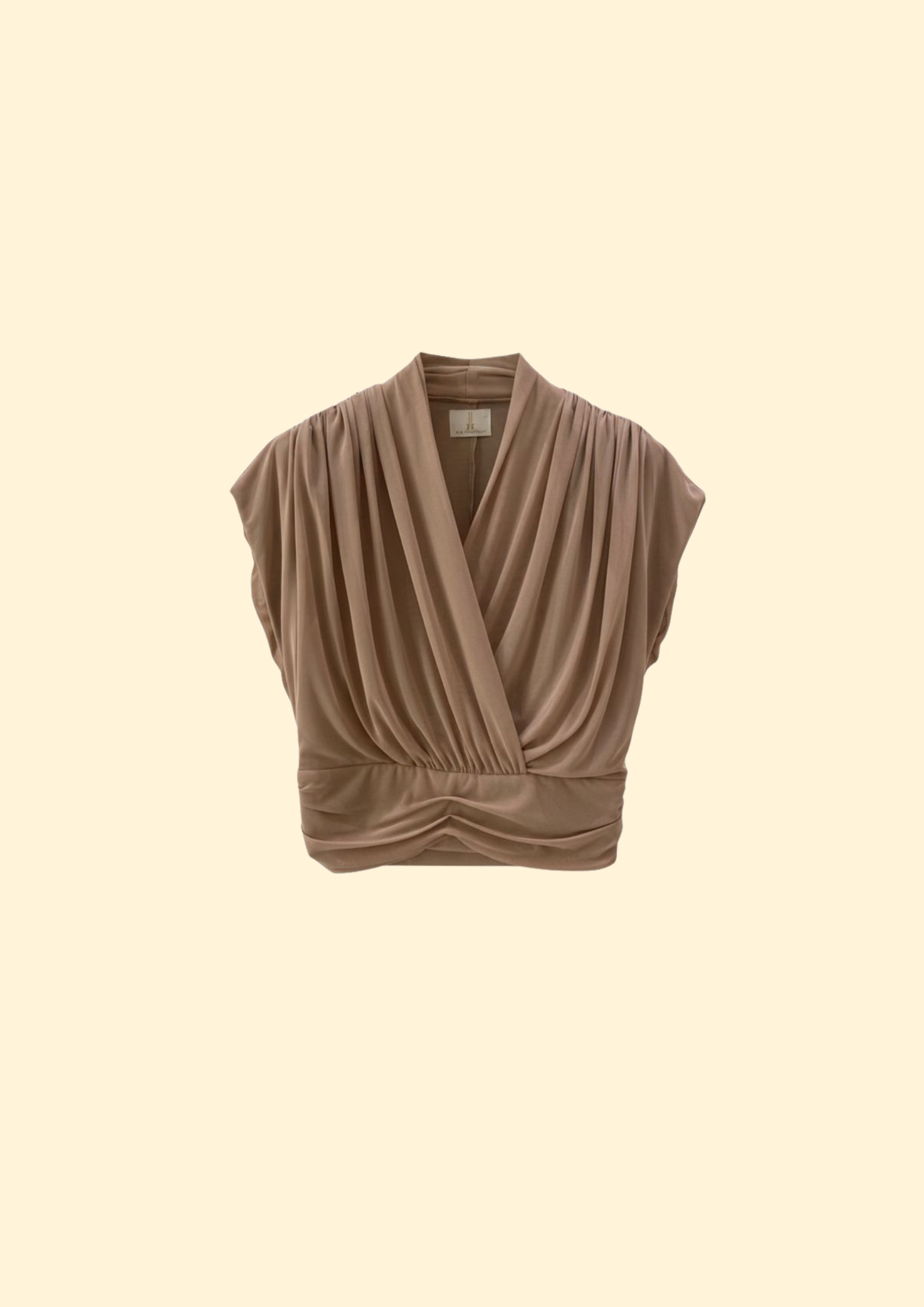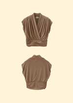 The Amari Top is defined by its graceful draping and softly structured wrap silhouette, creating a refined yet feminine look. Designed with gentle pleats and a flattering cinched waist, it enhances the form with effortless elegance.