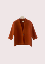 The Wilma Thick Knit Jacket showcases a relaxed, boxy silhouette with cropped sleeves and a clean open-front design secured by a single button. Crafted from thick knit fabric, it offers both structure and comfort, making it an effortless layering piece. Its minimalist lines and rich color add modern sophistication. Perfect for travel, it provides lightweight warmth and versatility—easily transitioning from airport lounges to casual strolls or evening outings while maintaining a polished, refined look wherever the journey takes you.